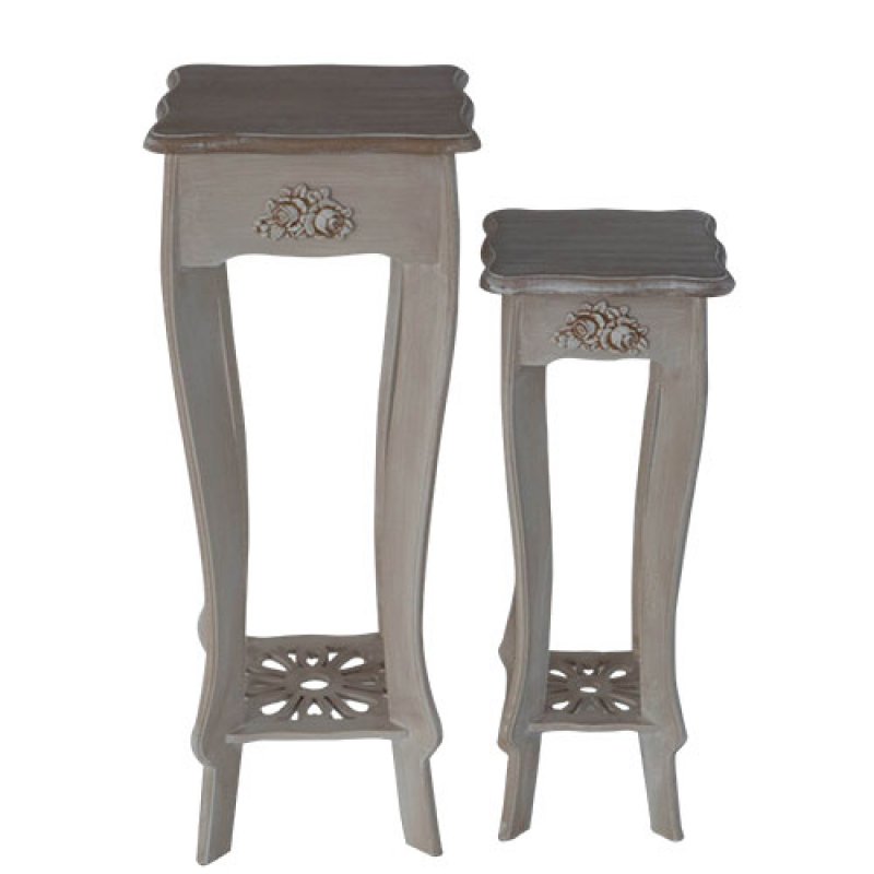 Ανθοστήλη, χειροποίητη ξύλινη (PINE wood), σχ."MANDY" με "DE CAPE" φινίρισμα σε "Antique BEIGE" και Καφέ (καρυδί) επιφάνειες. Διαστ: 30x30x78εκ. & 25x25x63εκ.