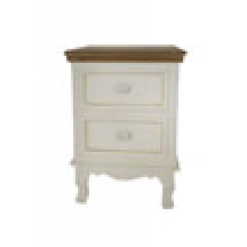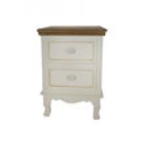 Χειροποίητο ξύλινο κομοδίνο με 2 συρτάρια. Decape φινίρισμα σε χρώμα 'Antique cream' και επιφάνεια σε καφέ χρώμα. Διαστάσεις: 37x34x53εκ.