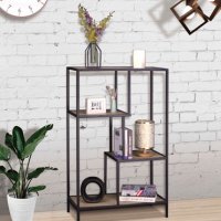 Μοντέρνα μεταλλική Ραφιέρα με 4 ράφια, με σκελετό σε μαύρο χρώμα και (πραγματική) 3D μελαμίνη σε μοντέρνες αποχρώσεις δεσποτάκι, σε χρώμα του γκρι - καφέ.
