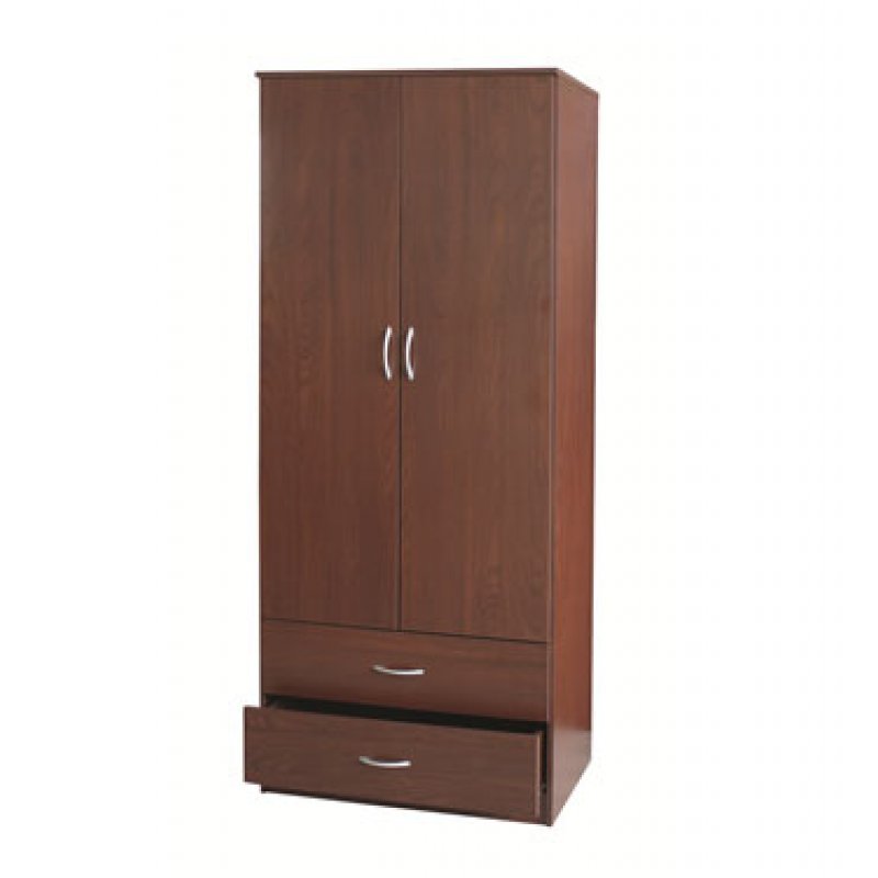Ντουλάπα δίφυλλη με 2 συρτάρια με επένδυση μελαμίνης.