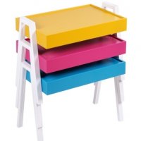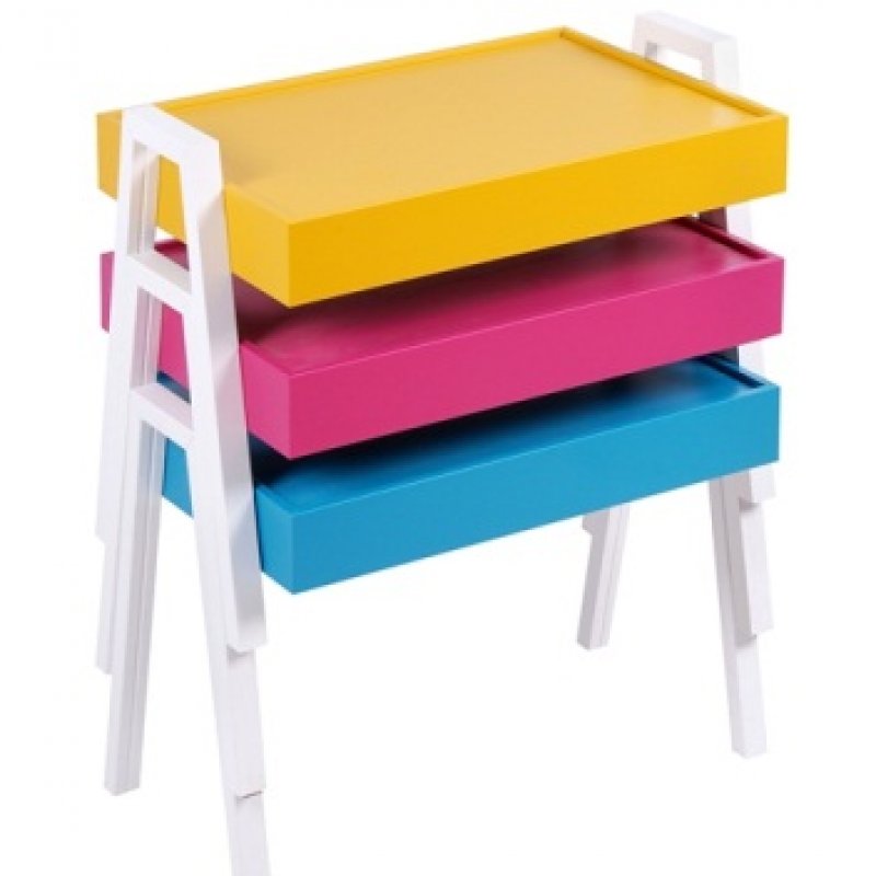 Σετ 3τμχ. Βοηθητικά Τραπεζάκια Ζιγκόν (ορθογώνια), με Λευκό ξύλινο σκελετό και επιφάνεια σε 3 διαφορετικά μοντέρνα χρώματα (κίτρινο-φούξια-γαλάζιο). Διαστ:50x35x45εκ.