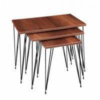 Σετ 3τμχ. Τραπεζάκια Ζιγκόν (ορθογώνια), με ξύλινο σκελετό σε χρώμα Καρυδί και μεταλλικά πόδια, σε μαύρο χρώμα.