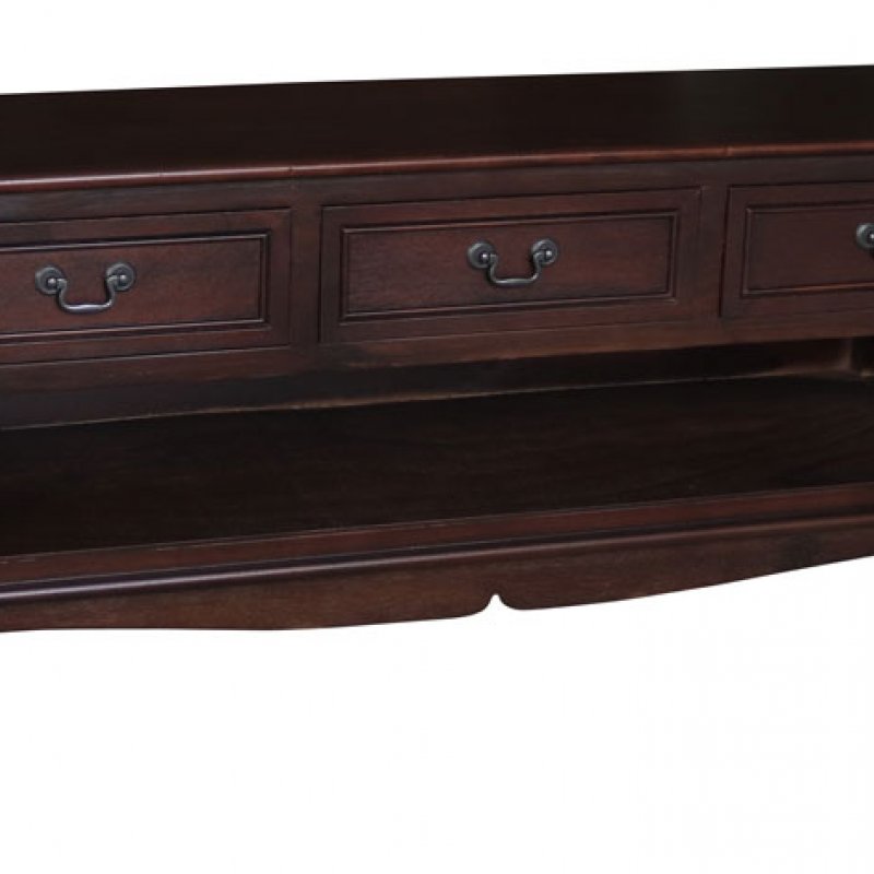 Ξύλινο χειροποίητο Τραπέζι TV (stand) με καπλαμά πεύκου, με 3 συρτάρια σε χρ. Σκούρο καρυδί (walnut).