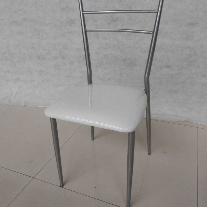 Καρέκλα σχ. 'RICA' με μεταλλικό σκελετό σε χρώμα ασημί Φ25x0,8mm με κάθισμα πάχους 3,5εκ. από PU σε Λευκό χρώμα. Διαστ. 45x39x87 εκ.