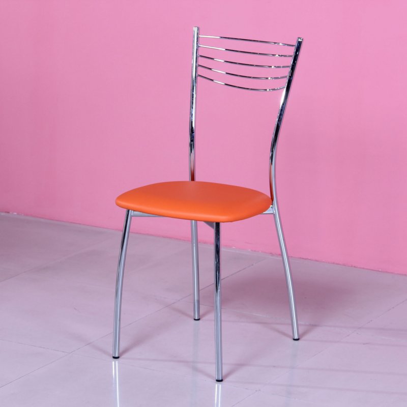 Καρέκλα σχ. 'MALAGA' με μεταλλικό ανεξίτηλο επιχρωμιωμένο σκελετό με κάθισμα από PU σε Πορτοκαλί χρώμα.