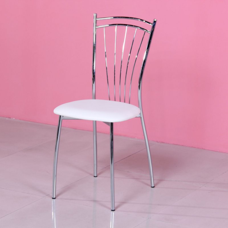 Καρέκλα σχ. 'ROMA' με μεταλλικό ανεξίτηλο επιχρωμιωμένο σκελετό με κάθισμα από PU σε Εκρού χρώμα.