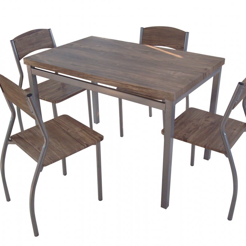 Σετ τραπεζαρίας 5τμχ. σχ. 'FIESTA' από MDF και επένδυση από καπλαμά με απόχρωση 'τελείωμα' Δεσποτάκι σε ΓΚΡΙ χρώμα. Διαστ.τραπεζιού: 110x70x76εκ. Διαστ.καρέκλας: 40x48x83εκ.