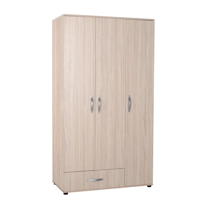 Ντουλάπα τρίφυλλη, από μελαμίνη υψηλής, σε χρώμα SONOMA. Διαθέτει συρτάρι, ράφια καθώς και ράγα για κρεμάστρες.