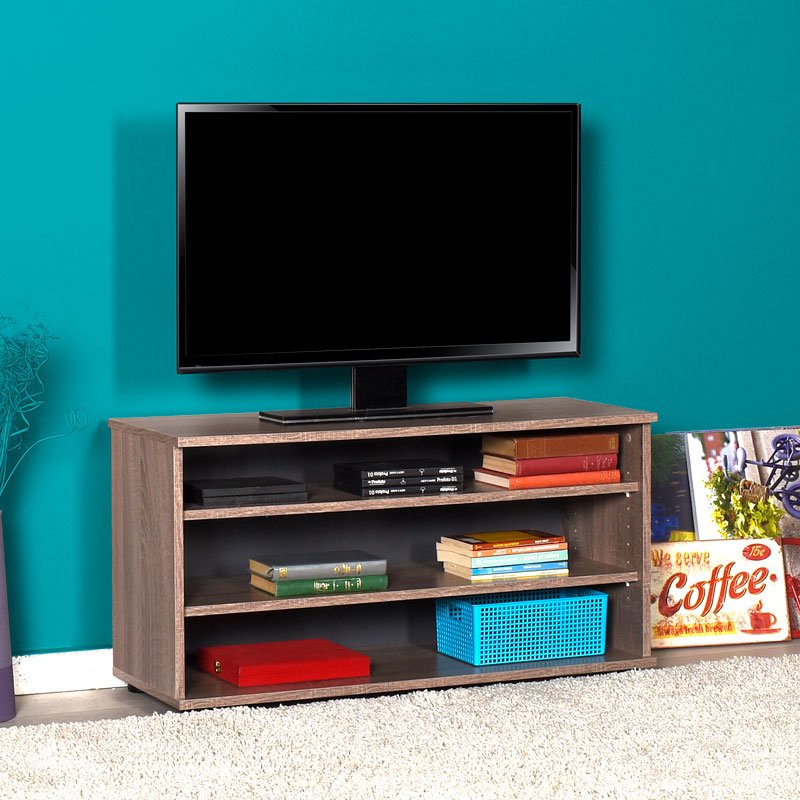 Έπιπλο TV από μελαμίνη υψηλής ποιότητας, με τρία 3 ράφια και σκελετό σε χρώμα LATTE και πλάτη σε ΓΚΡΙ-ΑΝΘΡΑΚΙ.