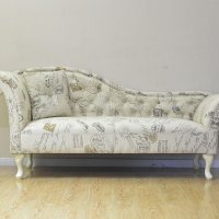 Καναπές - Love seat (αριστερός) τ.Chesterfield, σχ."POST" με υφασμάτινη επένδυση και μεταλλικά κουμπιά (καμπαράδες) όπως φωτό και ξύλινα πόδια σε decape κρεμ χρώμα. Διαστάσεις: 174x60x80εκ.