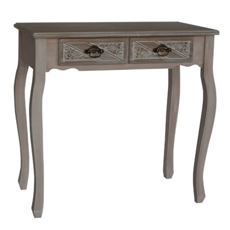 Κονσόλα (ορθογώνια) με 2 συρτάρια, χειροποίητη ξύλινη (PINE wood), σχ."MANDY" με "DE CAPE" φινίρισμα σε "Antique BEIGE" και Καφέ (καρυδί) επιφάνειες. Διαστ: 75x40x71εκ.