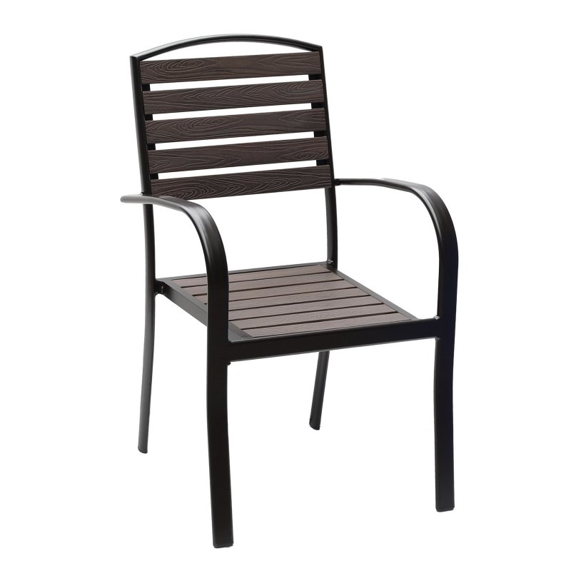Πολυθρόνα αλουμινίου, σχ"ALBA" σε μαύρο χρώμα. Η πλάτη και το κάθισμα είναι, από POLLYWOOD (ανακυκλώσιμο 100% πλαστικό σε απομίμηση ξύλου) σε σκούρο καφέ χρώμα Διαστ:57x58x89εκ.