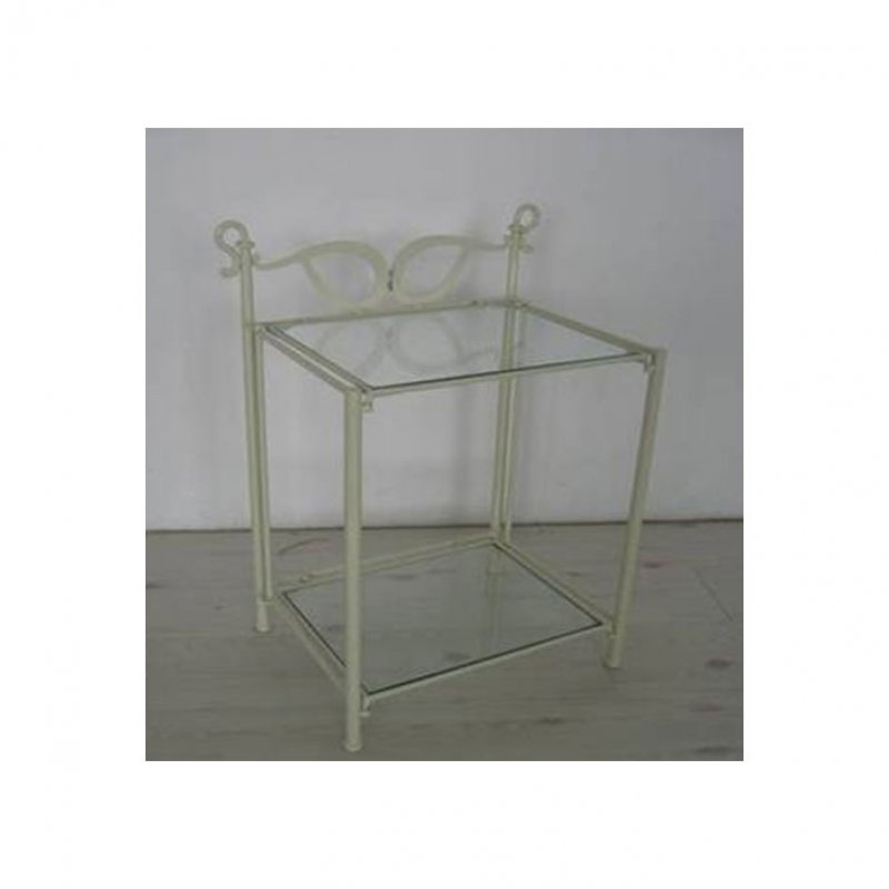 Μεταλλικό χειροποίητο κομοδίνο, σχ. 'NEFELI' σε χρώμα 'Antique Cream', με 2 ράφια γυάλινης επιφάνειας. Διαθέσιμο και σε 'Antique Bronze'. Διαστάσεις 52x37x71εκ.